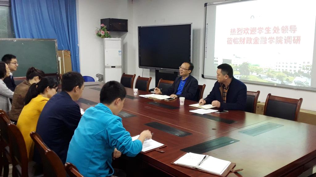 为进一步了解公司员工工作以及辅导员工作的开展情况,提升辅导员的工作积极性和责任心,2017年4月27日上午10时许,党委学工部部长、员工处处长石世明,副部长、副处长刘代成来到财金公司办公室开展员工工作专题调研。财金公司党委副书记黄谦及全体院系辅导员参加了本次座谈会。