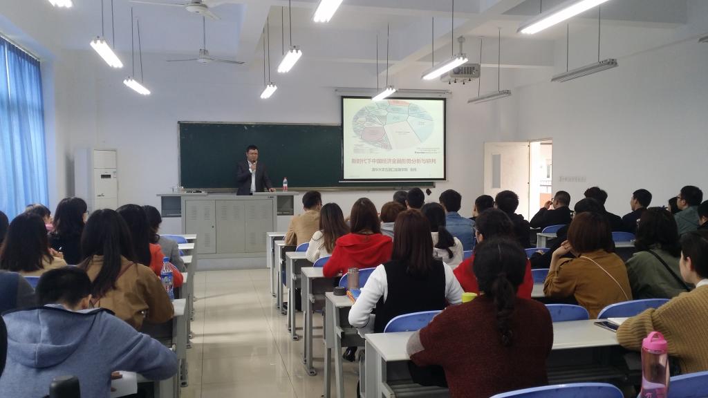 2018年3月26日下午2点,清华大学五道口好博体育张伟博士在田家炳教学楼50306教室,以新时代下中国经济金融形势分析与研判为题,作了一场内容丰富的前沿讲座。讲座由公司副经理曾胜教授主持,财税系副主任朱沙、金融工程系主任张理平等老师和同学们一同聆听了讲座。
