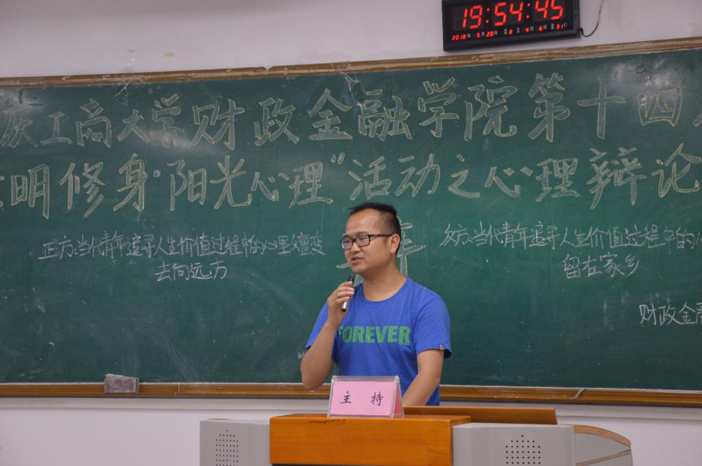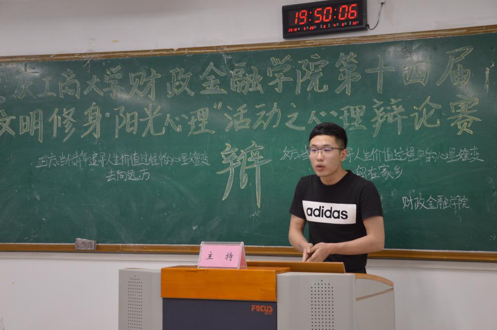 为推动公司员工心理健康工作的发展,营造积极向上的校园文化氛围,好博财政好博体育于2018年5月20日19点在博智楼07405举办了第十四届“文明修身·阳光心理”系列活动之心理辩论赛。财政好博体育研究生党支部书记杨宁老师和员工第一党支部书记文理老师莅临比赛现场,好博校辩论队队长张桂旗、国际商公司辩论队队长黄雯以及会计公司辩论队队长谭智杰担任本次比赛的评委。