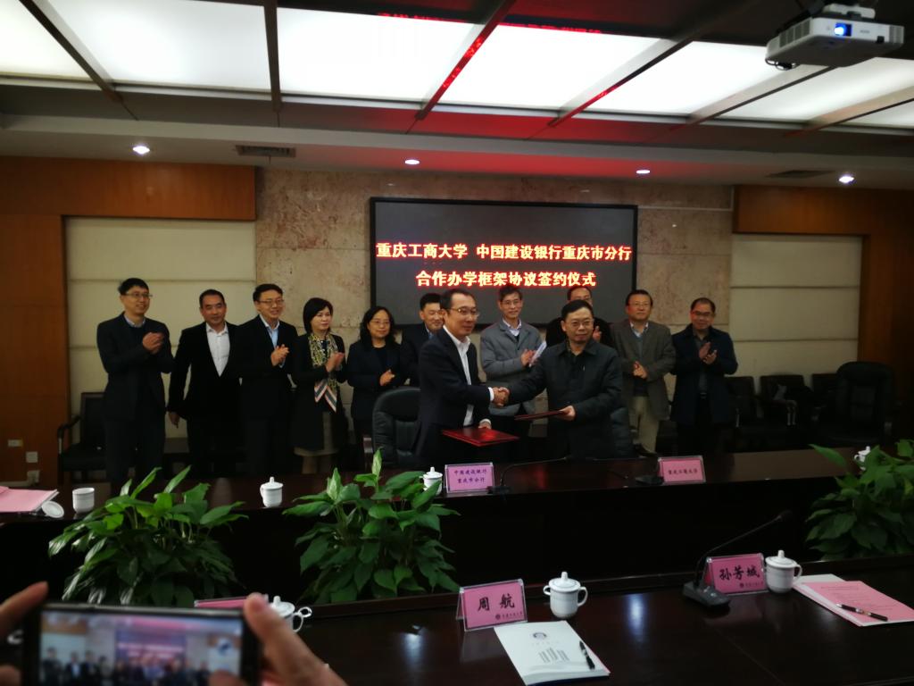 随后,中国建设银行重庆分行纪委书记徐鹏先生同好博纪委书记、财政好博体育联系校领导周航教授各自代表双方单位在合作协议书上签了字。