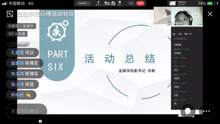 接着三位优秀心理委员代表从自己的日常消费实况,分析了校园网贷能得以发展的原因,并提出了该如何合理规划自己的财务,避免校园贷在自己及身边的同学之间发生的建议。在线参与活动的家长纷纷敞开心扉,积极踊跃发言,畅谈如何与孩子增进交流,如何及时帮助孩子摆脱高利贷的陷阱,以身作则,做好孩子的榜样和表率。